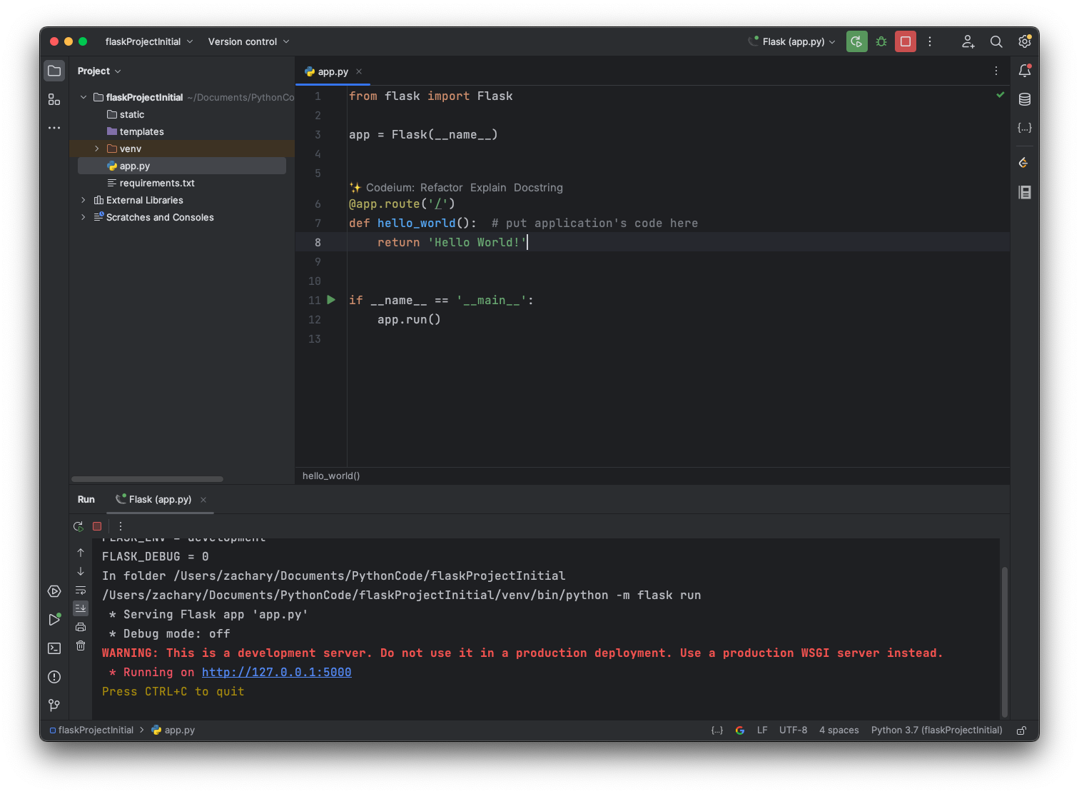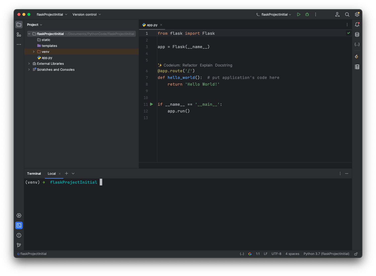 Flask 项目创建及安装 Flask 创建一个 Flask