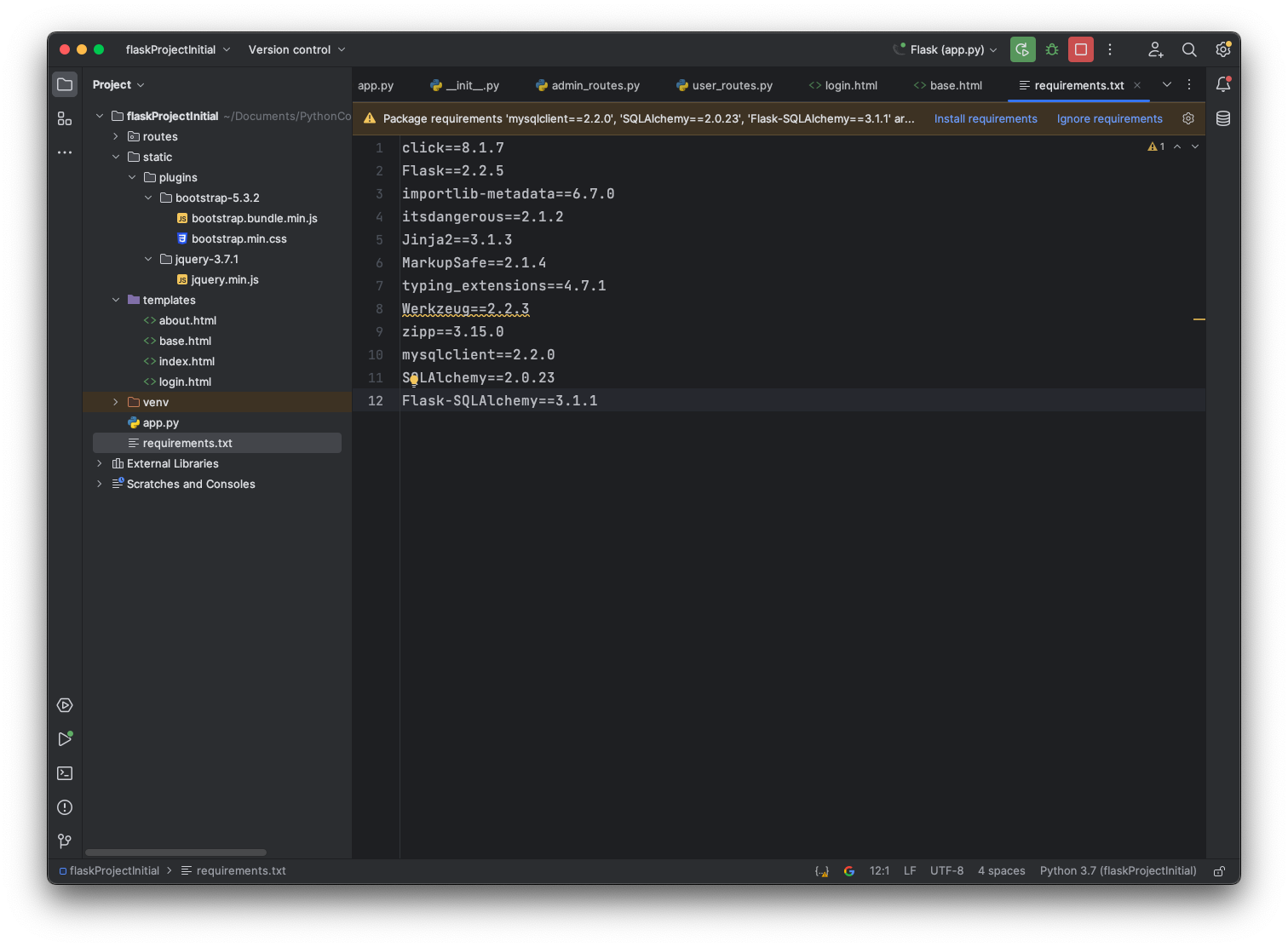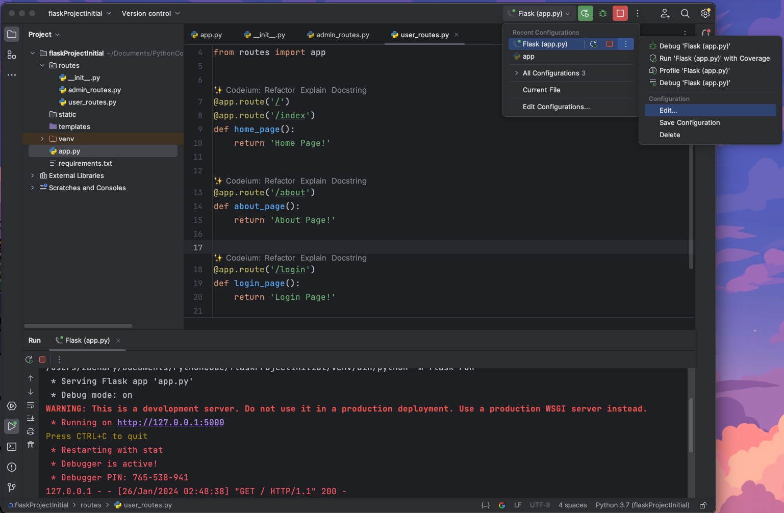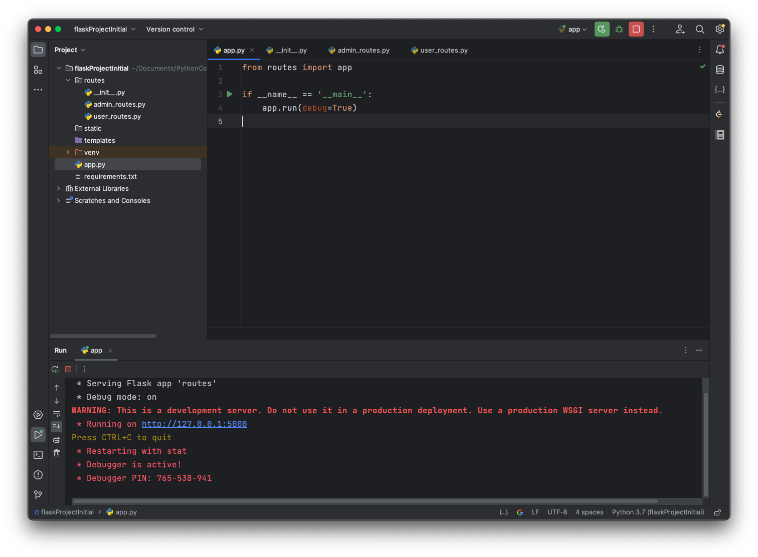 1 2 3 4 5 6 from flask import Flaskapp = Flask(__name__) from routes import user_routesfrom routes import admin_routes