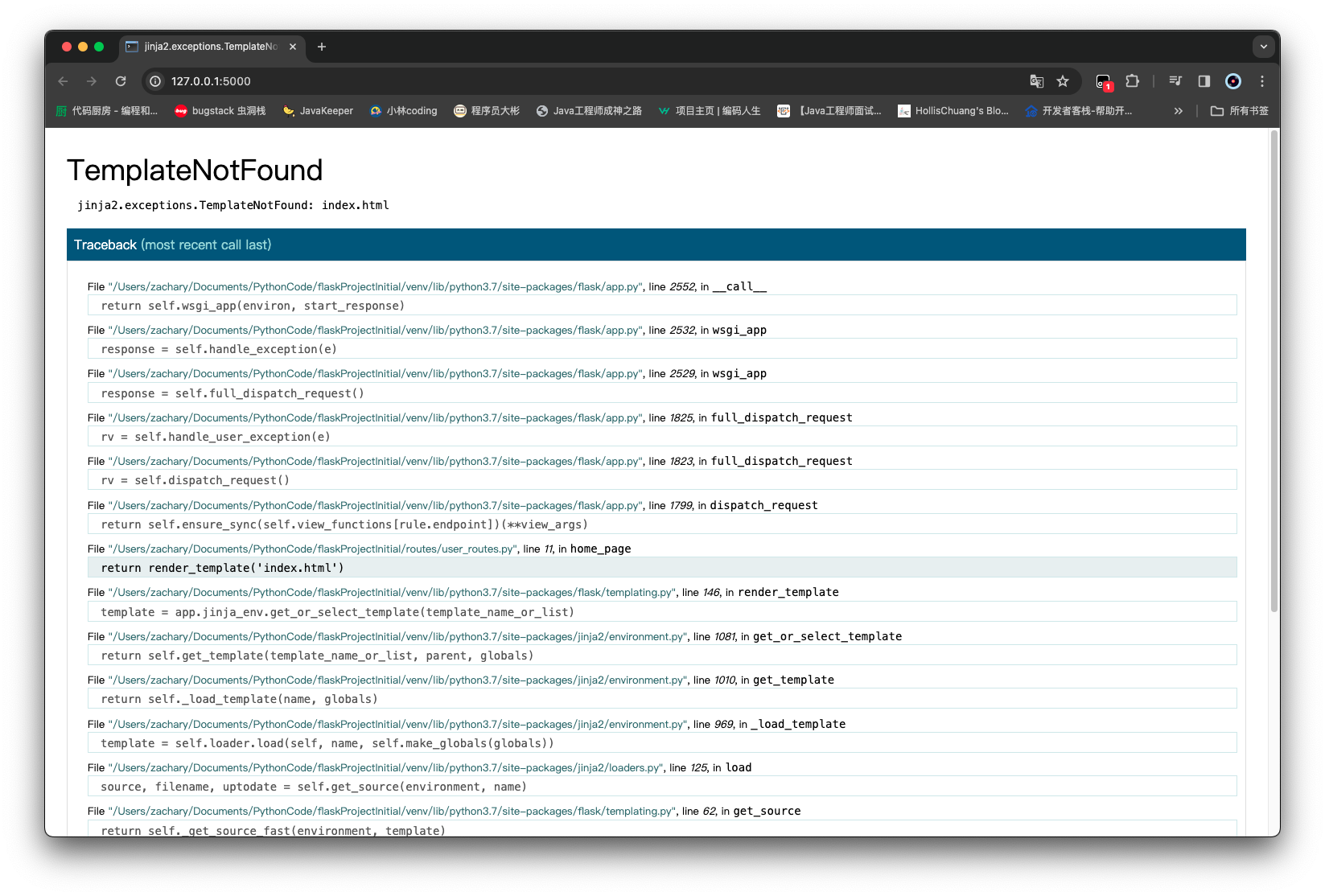 编写完这两个代码还不够,由于对 app 对象来说,它并不知道 index.html 的位置,所以这时候直接运行会报找不到模板