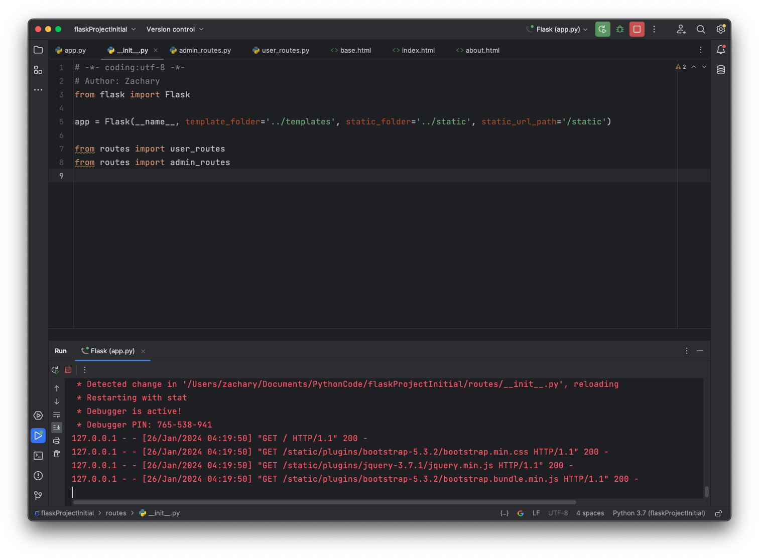 1 2 3 4 5 6 from flask import Flaskapp = Flask(__name__, template_folder='../templates' ) from routes import user_routesfrom routes import admin_routes