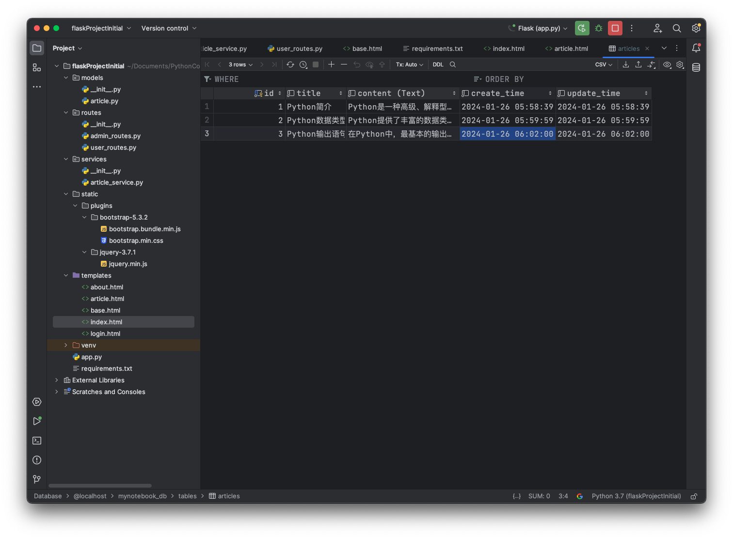 创建 models 在项目下创建一个/models的包,然后创建一个article.py
