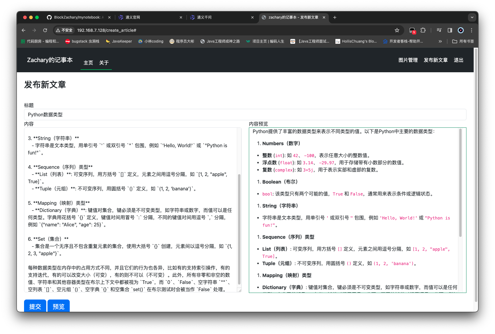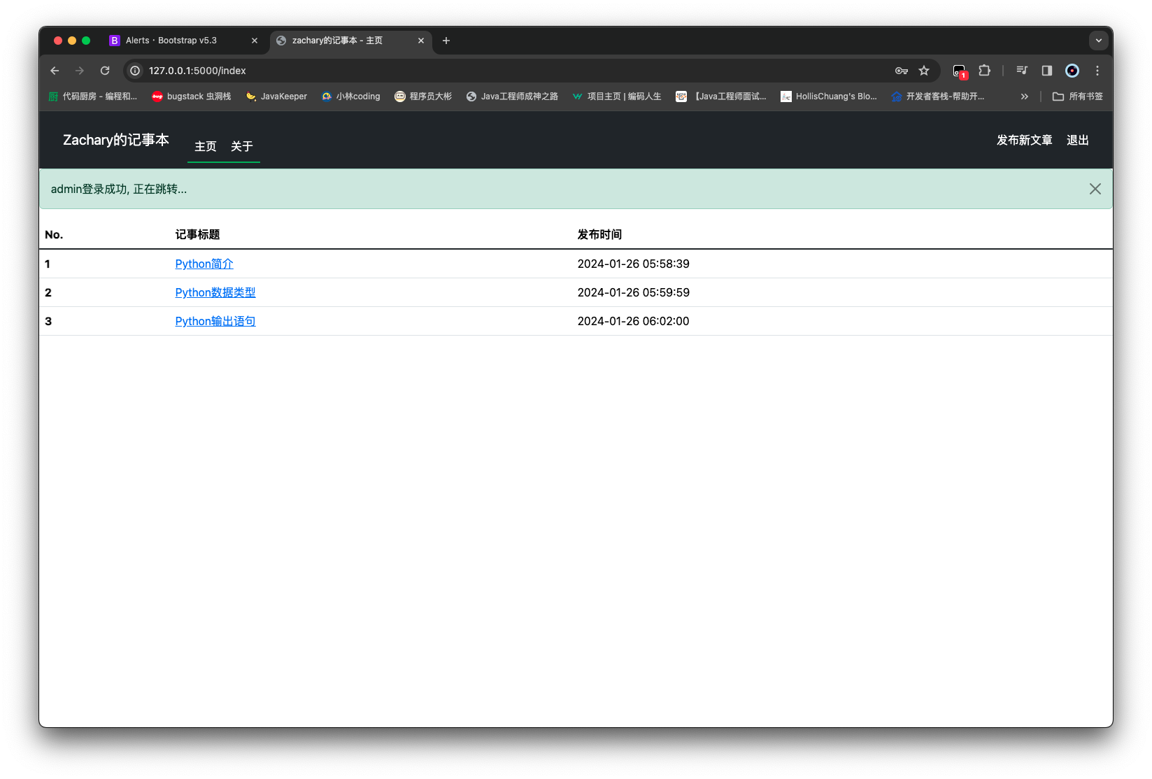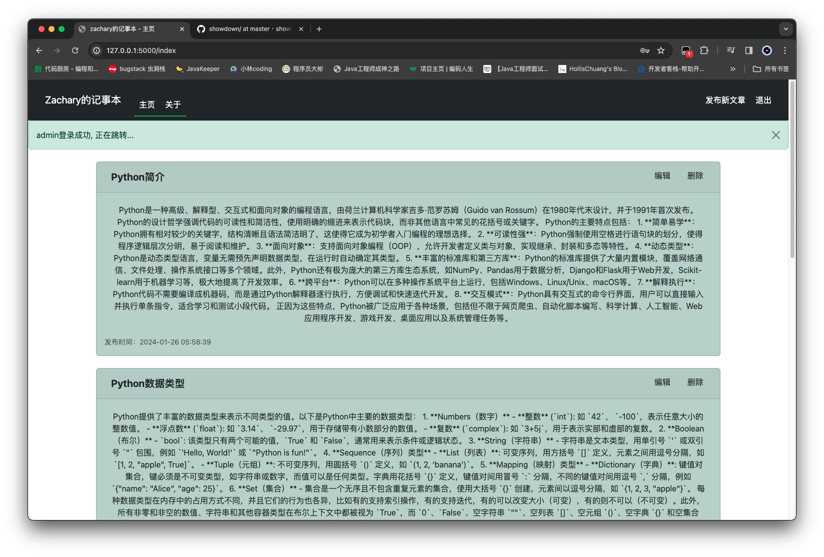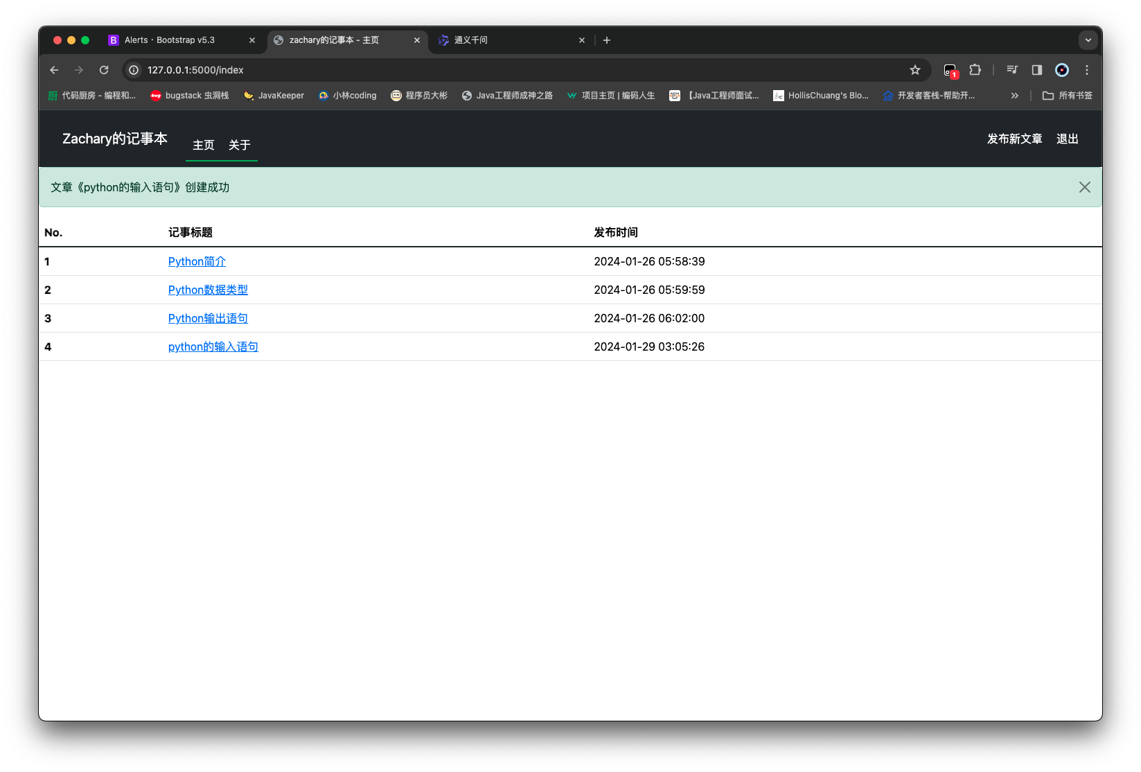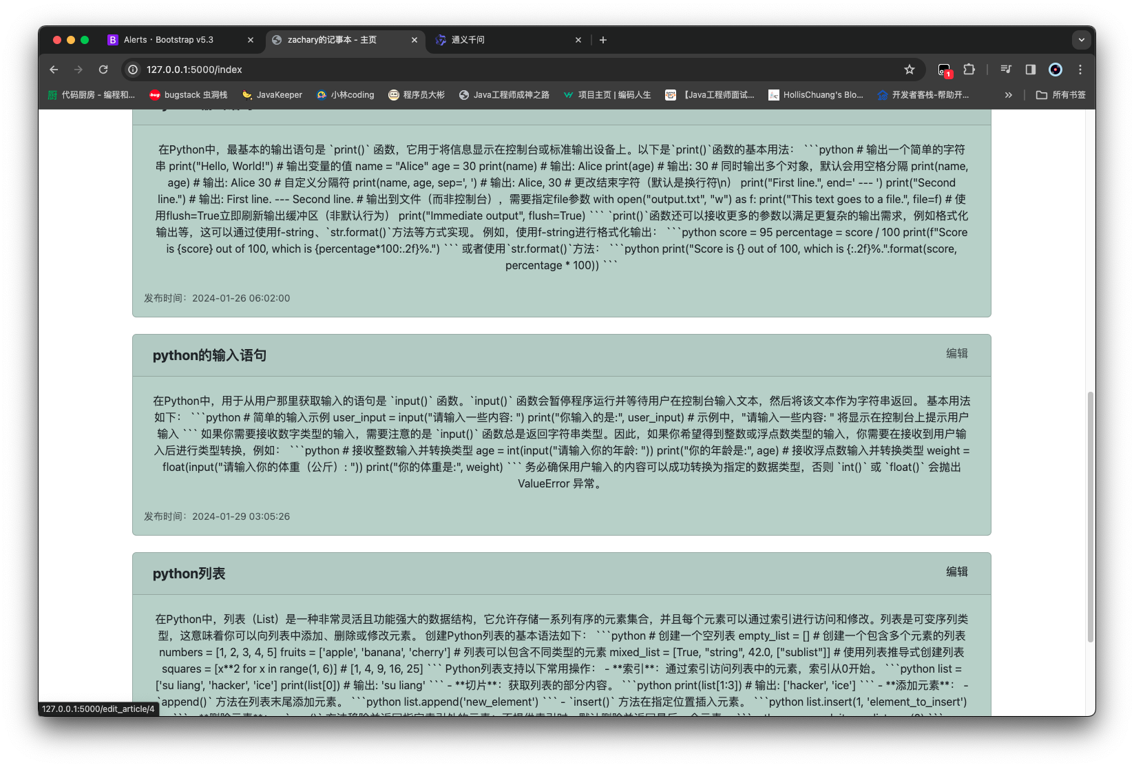 1 2 3 4 5 6 {% extends 'base.html' %} {% block title %} zachary的记事本 - {{ article.title }} {% endblock %} {% block content %} <h1 > {{ article.title }}</h1 > <p > 发布于:{{ article.create_time }}</p > <p > {{ article.content }}</p > {% endblock %}