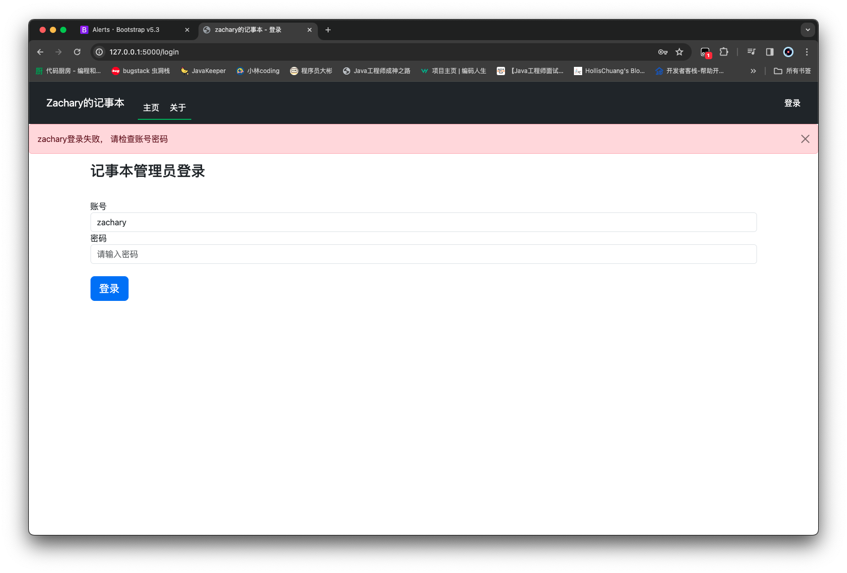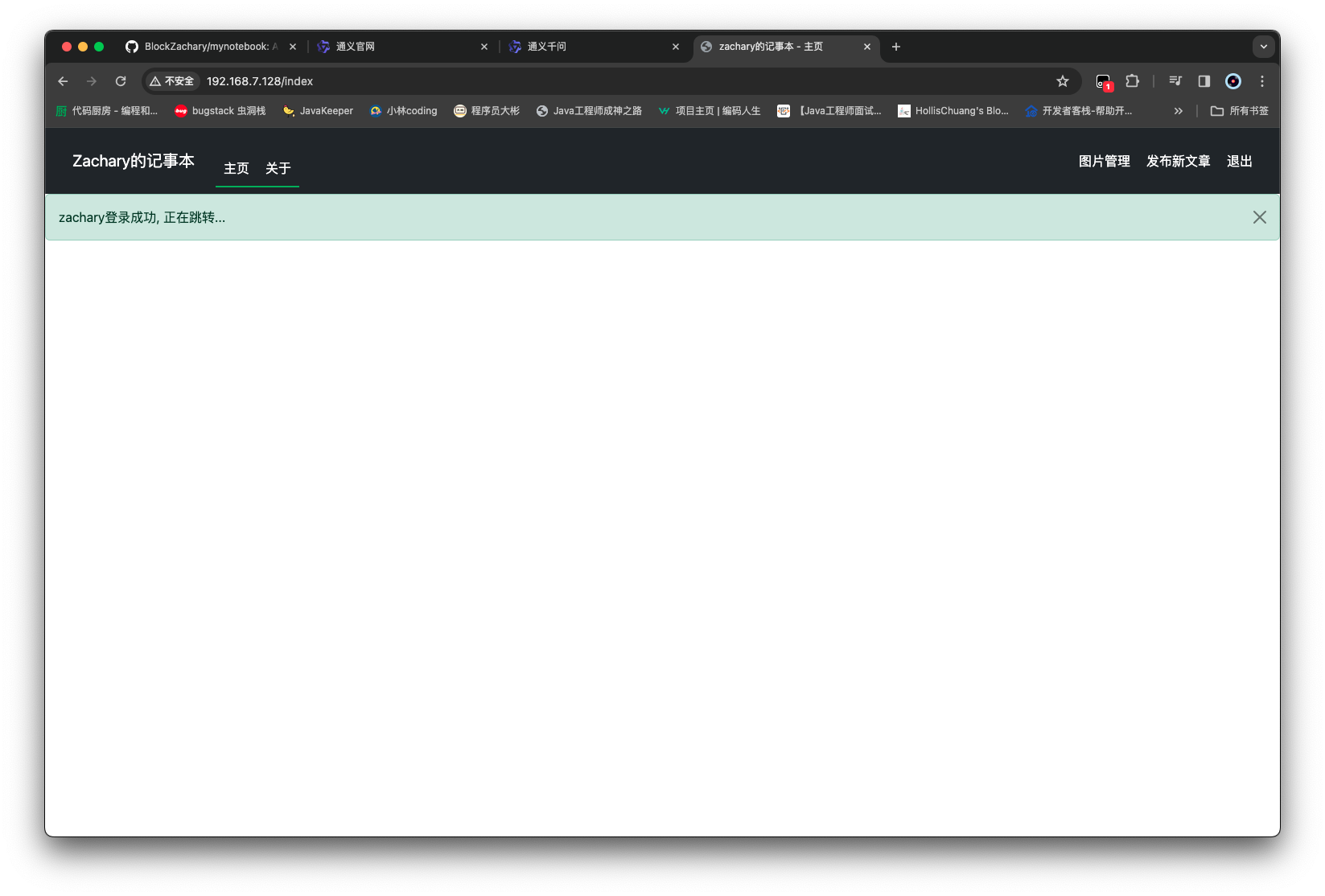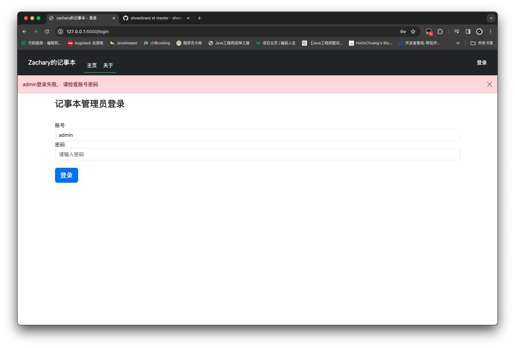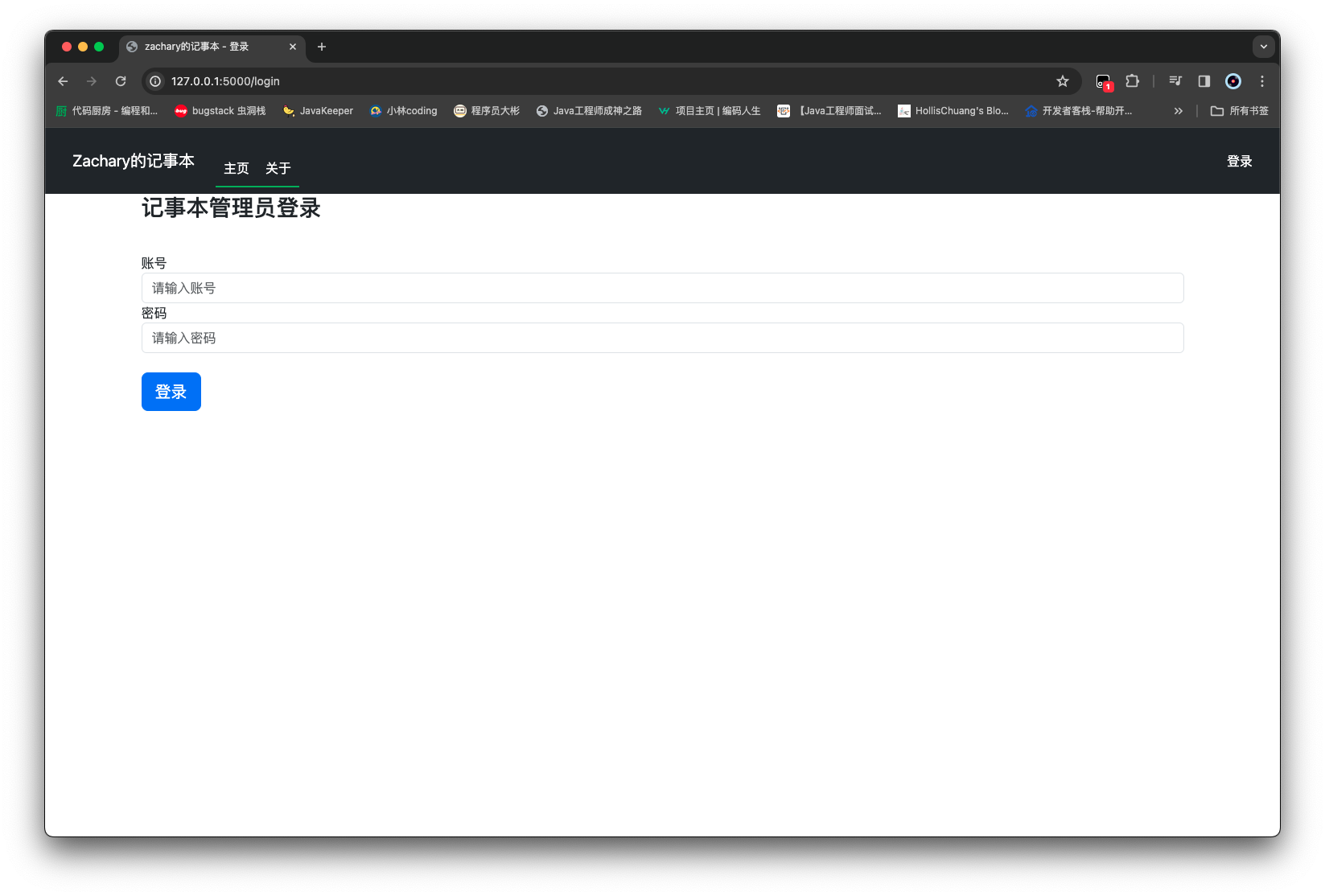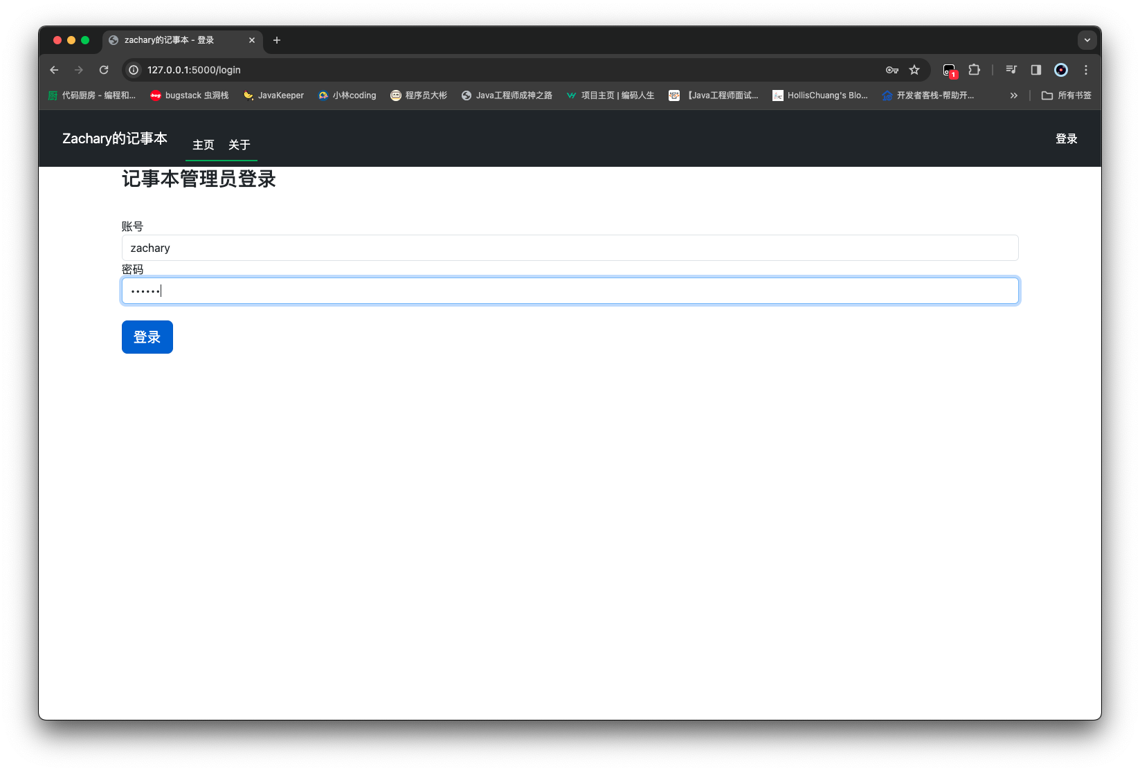 docker 部署 准备工作 1 2 3 4 5 6 7 8 9 10 11 12 13 14 15 16 17 18 19 20 21 22 23 24 import osfrom flask import Flaskfrom flask_login import LoginManagerfrom flask_sqlalchemy import SQLAlchemyMYSQL_HOST = os.getenv('MYSQL_HOST' , 'localhost' ) MYSQL_PORT = os.getenv('MYSQL_PORT' , 3306 ) MYSQL_USER = os.getenv('MYSQL_USER' , 'root' ) MYSQL_PASSWORD = os.getenv('MYSQL_PASSWORD' , '123456' ) MYSQL_DB = os.getenv('MYSQL_DB' , 'mynotebook_db' ) app = Flask(__name__, template_folder='../templates' , static_folder='../static' , static_url_path='/static' ) app.config[ 'SQLALCHEMY_DATABASE_URI' ] = f'mysql+mysqldb://{MYSQL_USER} :{MYSQL_PASSWORD} @{MYSQL_HOST} :{MYSQL_PORT} /{MYSQL_DB} ' app.config['SECRET_KEY' ] = 'zachary123456' db = SQLAlchemy(app) login_manager = LoginManager(app) from routes import user_routesfrom routes import admin_routes