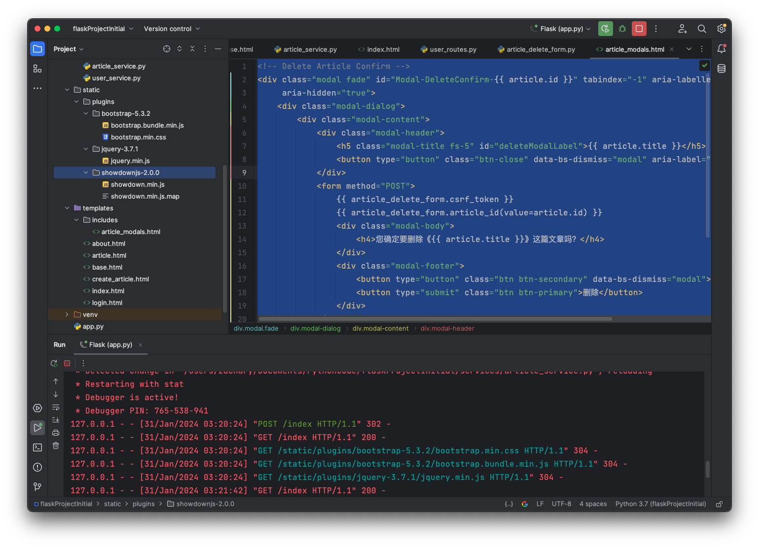 在/templates下创建一个/includes文件夹,然后创建一个article_modals.html用于存放与文章相关的 html