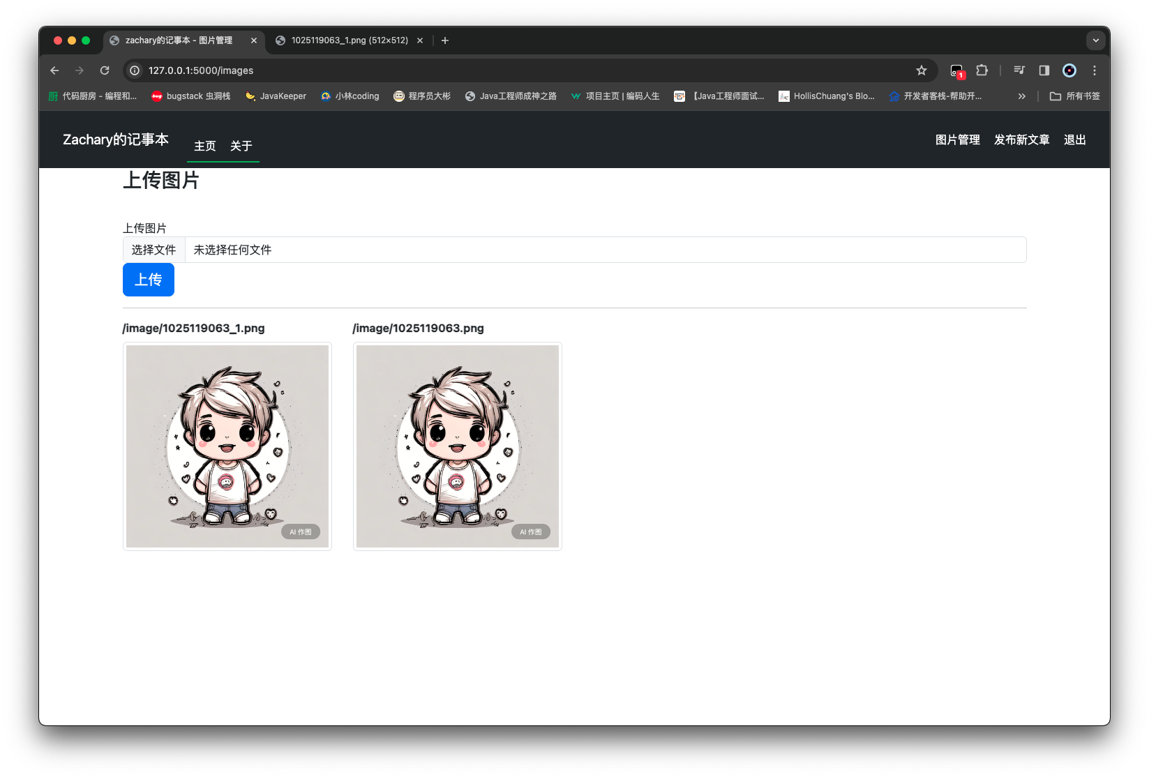 接下来还需要做两件事,一个是当上传重复名称图片时,是否要覆盖的问题;另一个是主页需要有一个按钮跳转至图片上传页面