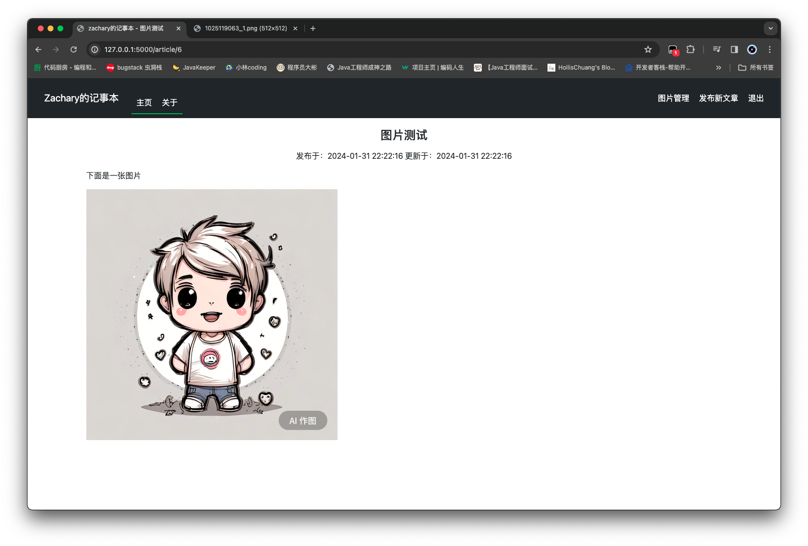 在图片管理的页面可以看到每一张图片上方的文字,在记事本中可以使用 markdown 语法显示该图片