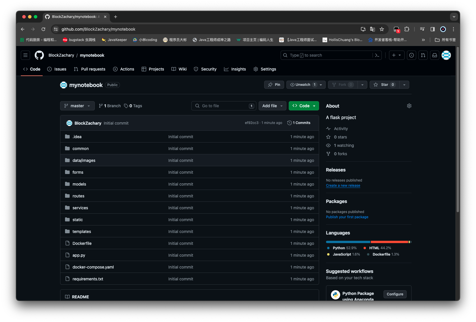 1 2 3 4 5 6 7 8 9 10 11 12 13 14 15 16 root@ubuntu-server:~/pythonProject# ls cmdDockerSample cmdEntrypointDockerSample entrypointDockerSample flaskDockerSample root@ubuntu-server:~/pythonProject# git clone https://github.com/BlockZachary/mynotebook.git Cloning into 'mynotebook'... remote: Enumerating objects: 61, done. remote: Counting objects: 100% (61/61), done. remote: Compressing objects: 100% (54/54), done. remote: Total 61 (delta 3), reused 61 (delta 3), pack-reused 0 Unpacking objects: 100% (61/61), 447.81 KiB | 16.00 KiB/s, done. root@ubuntu-server:~/pythonProject# ls cmdDockerSample cmdEntrypointDockerSample entrypointDockerSample flaskDockerSample mynotebook root@ubuntu-server:~/pythonProject# cd mynotebook/ root@ubuntu-server:~/pythonProject/mynotebook# ls app.py data Dockerfile models routes static common docker-compose.yaml forms requirements.txt services templates root@ubuntu-server:~/pythonProject/mynotebook#