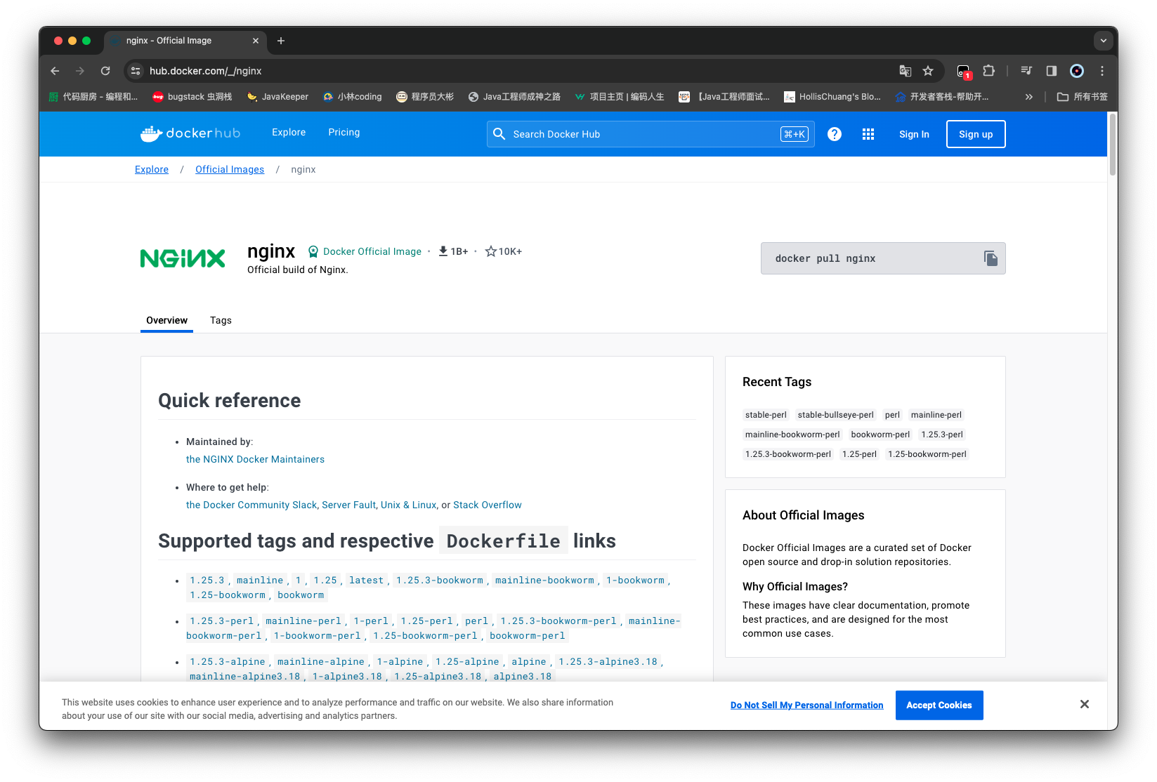 docker run [镜像名称]默认表示最新版本的镜像docker run [镜像名称]:[版本号]使用版本号指定的镜像- 查看官方维护的镜像版本号 https://hub.docker.com/