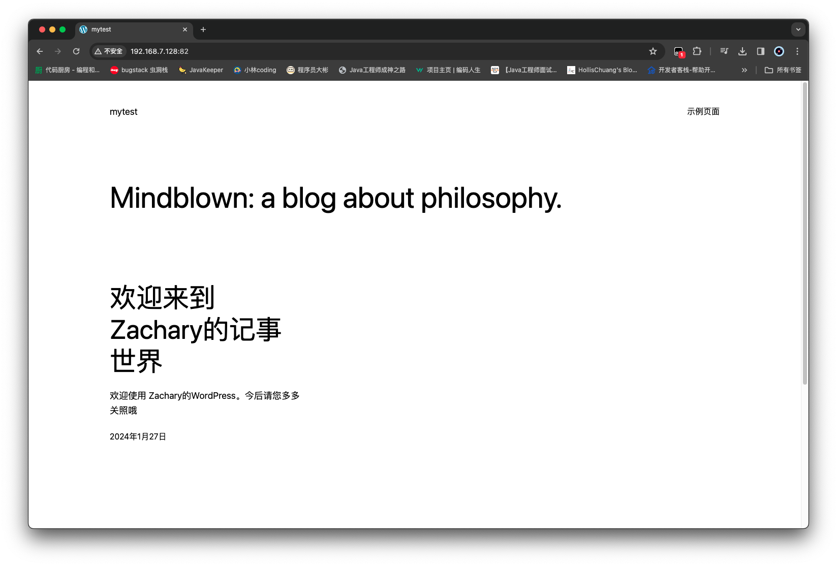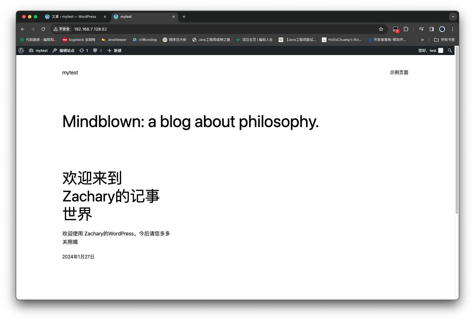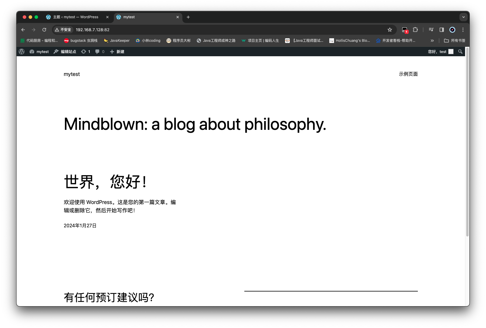 在浏览器输入主机 ip:82,可以进入 wordpress 页面