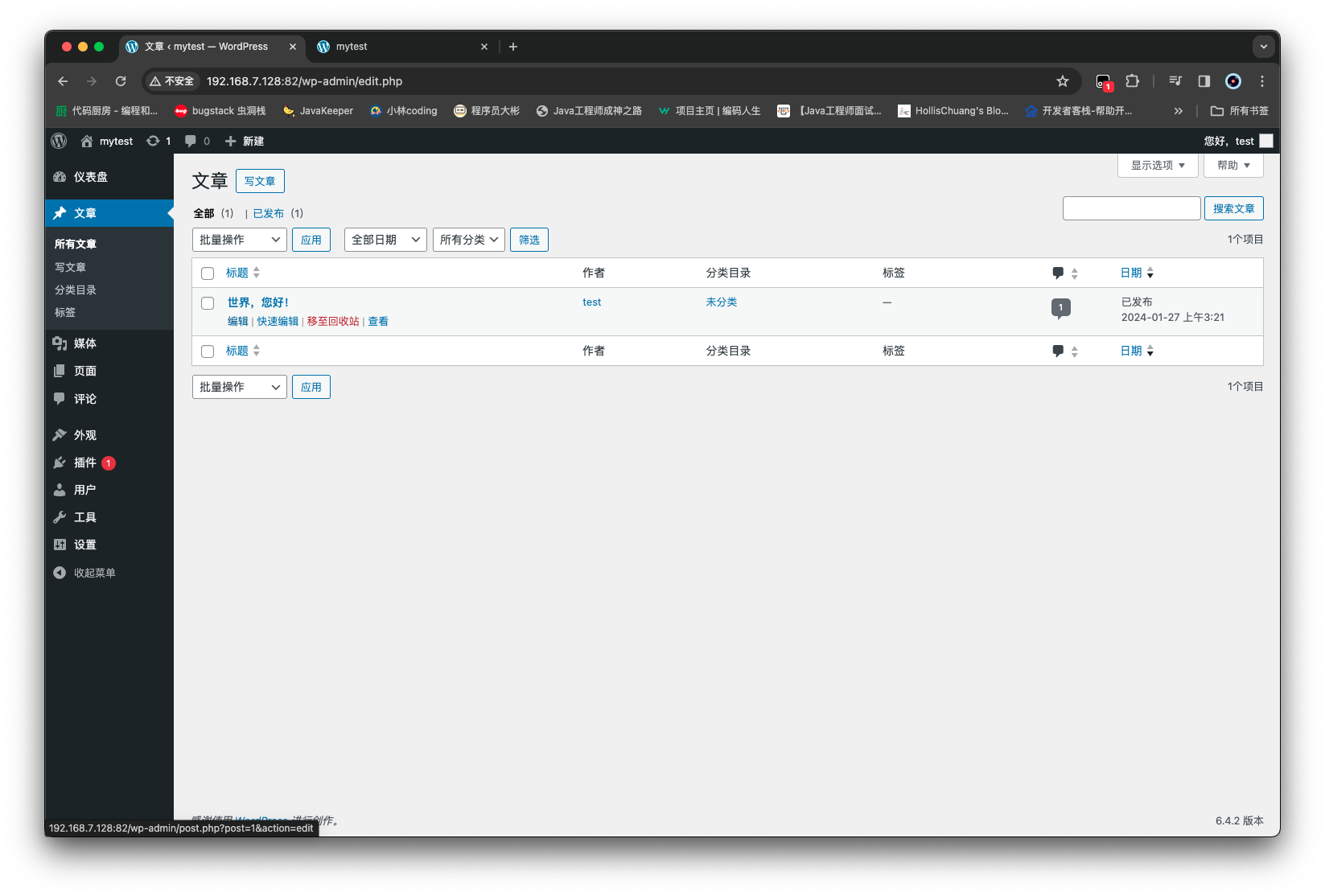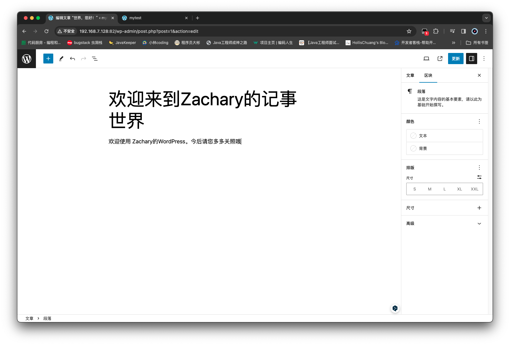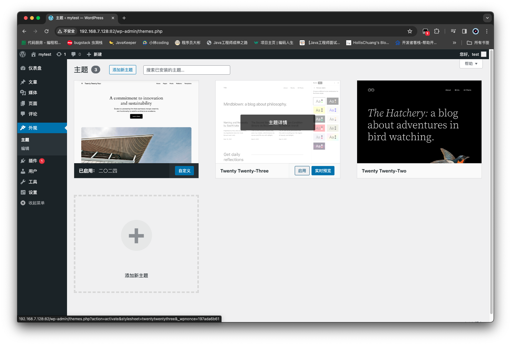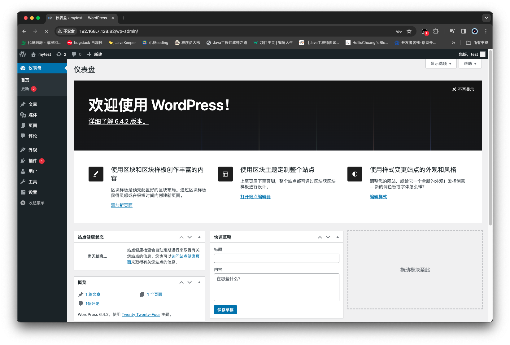 在浏览器输入主机 ip:82,可以进入 wordpress 页面