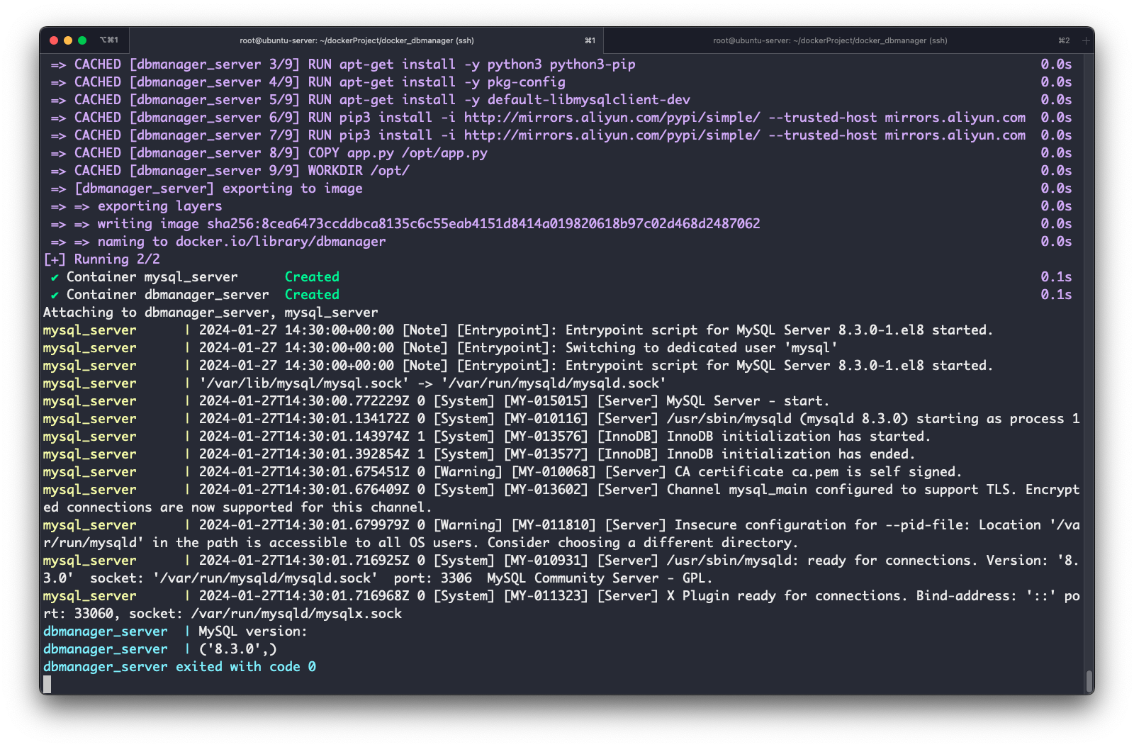 1 | root@ubuntu-server:~/dockerProject/docker_dbmanager# docker compose up --build |